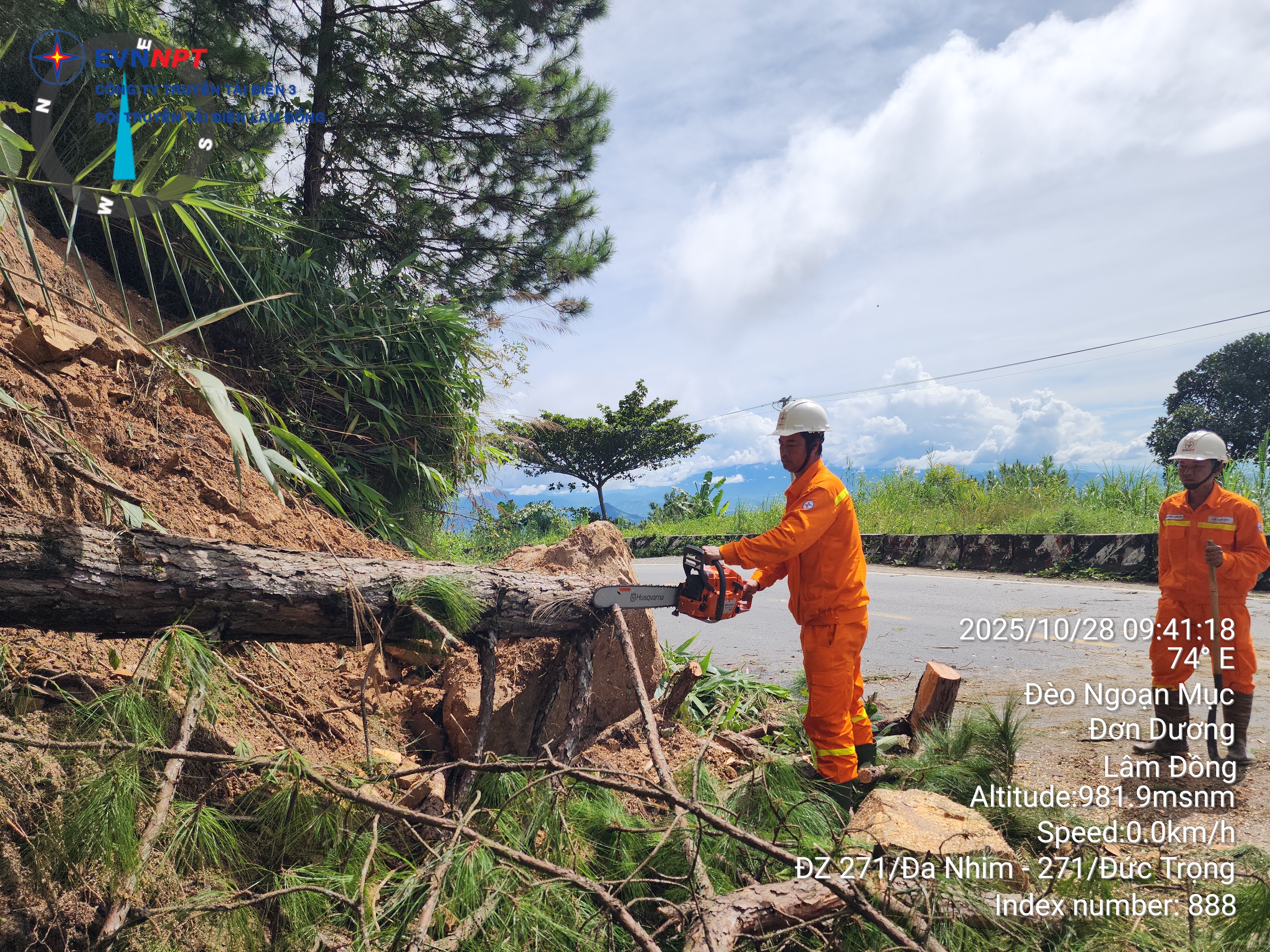 Không ai bảo ai, chúng tôi lập tức hành động. Những chiếc cưa máy, những lưỡi rựa vốn dùng để phát quang hành lang tuyến được nhanh chóng mang ra. Tiếng cưa xé gió vang lên giữa đèo vắng, xen lẫn tiếng hô nhịp nhàng của anh em khi cùng nhau kéo, đẩy những thân cây nặng trịch. Dưới lớp áo dính bùn, mồ hôi hoà lẫn nước mưa, nhưng trong ánh mắt mỗi người là sự quyết tâm và tinh thần “tận tâm – trách nhiệm” – những giá trị mà mỗi người truyền tải điện luôn mang theo bên mình.